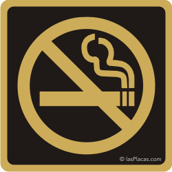 Placa aluminio pictograma PROHIBIDO FUMAR. Se puede pedir en DORADO o PLATEADO a igual precio. Hay varios tamaños fijos para elegir.