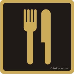 Placa aluminio pictograma RESTAURANTE. Se puede pedir en DORADO o PLATEADO a igual precio. Hay varios tamaños fijos para elegir.