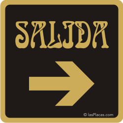 Placa aluminio pictograma SALIDA DERECHA. Se puede pedir en DORADO o PLATEADO a igual precio. Hay varios tamaños fijos para elegir.