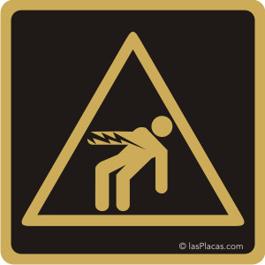 Placa aluminio pictograma RIESGO ELECTRICO. Se puede pedir en DORADO o PLATEADO a igual precio. Hay varios tamaños fijos para elegir.