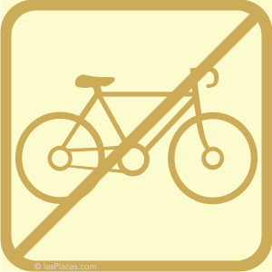 Pictograma de vinilo 'PROHIBIDO APARCAR BICICLETAS'. Hay 5 tamaños fijos y 8 colores para elegir. Se puede envíar para colocación NORMAL o INVERSA.