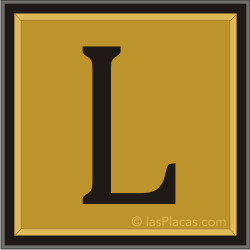 Placa para viviendas letra 'L', está GRABADA en LATON satinado biselado con base negra. Hay 8 tamaños fijos para elegir. Se envia adhesiva.