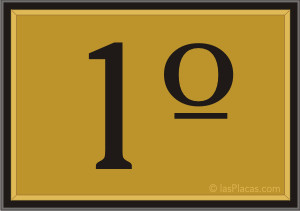 Placa para viviendas piso '1º', está GRABADA en LATON satinado biselado con base negra. Hay 8 tamaños fijos para elegir. Se envia adhesiva.