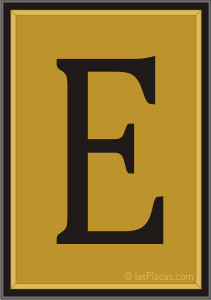 Placa para viviendas letra 'E', está GRABADA en LATON satinado biselado con base negra. Hay 8 tamaños fijos para elegir. Se envia adhesiva.