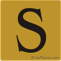 Placa para viviendas letra 'S', está GRABADA en aluminio de 1 mm., recanteada, se puede suministrar en DORADO o PLATEADO al mismo precio. Hay 8 tamaños fijos para elegir. Se enviá adhesiva.