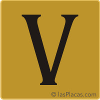Placa para viviendas letra 'V', está GRABADA en aluminio de 1 mm., recanteada, se puede suministrar en DORADO o PLATEADO al mismo precio. Hay 8 tamaños fijos para elegir. Se enviá adhesiva.
