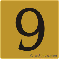 Placa para viviendas número '9', está GRABADA en aluminio de 1 mm., recanteada, se puede suministrar en DORADO o PLATEADO al mismo precio. Hay 8 tamaños fijos para elegir. Se enviá adhesiva.