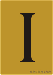 Placa para viviendas letra 'I', está GRABADA en aluminio de 1 mm., recanteada, se puede suministrar en DORADO o PLATEADO al mismo precio. Hay 8 tamaños fijos para elegir. Se enviá adhesiva.