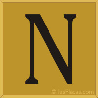 Placa para viviendas letra 'N', está GRABADA en LATON satinado biselado. Hay 8 tamaños fijos para elegir. Se envia adhesiva.
