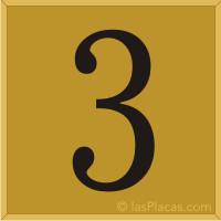 Placa para viviendas número '3', está GRABADA en LATON satinado biselado. Hay 8 tamaños fijos para elegir. Se envia adhesiva.