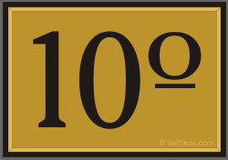 Placa viviendas piso '10º', está GRABADA en LATON satinado biselado con base negra. Hay 8 tamaños fijos disponibles. Se envía adhesiva.