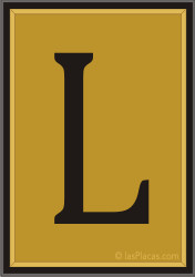 Placa para viviendas letra 'L', está GRABADA en LATON satinado biselado con base negra. Hay 8 tamaños fijos para elegir. Se envia adhesiva.