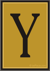 Placa para viviendas letra 'Y', está GRABADA en LATON satinado biselado con base negra. Hay 8 tamaños fijos para elegir. Se envia adhesiva.