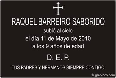 Placa para cementerio de aluminio negro, letras grabadas en plateado, rectangular recanteada.