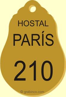 PLACA GRABADA para LLAVERO de HOTELES, HOSTALES, APARTAMENTOS, etc.