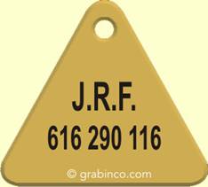 Este modelo de placa tiene unas medidas fijas, aunque se puede hacer en otros tamaños similares o menores por el mismo precio. También se puede fabricar en aluminio plateado por el mismo precio. Por defecto se envía en dorado y las medidas que indica la referencia. También puede ser apropiado como colgante para personas o identificador de objetos.