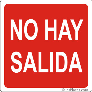 Placa para señalizar NO HAY SALIDAen ACRÍLICO blanco de 2 mm. y ALUMINIO blanco de 1 mm. Es una placa estándar con 8 tamaños fijos para elegir. Se envía adhesiva para su aplicación inmediata, aunque si lo solicita también se puede envíar con agujeros o nada, el precio no cambia.
