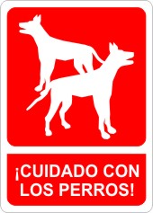 Placa señal CUIDADO CON LOS PERROS en aluminio. Hay 8 tamaños fijos para elegir. Se puede PERSONALIZAR con el texto que desee. Se envía adhesiva para su aplicación inmediata.