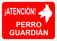 Placa señal ATENCION PERRO GUARDIAN en aluminio. Hay 8 tamaños fijos para elegir. Se puede PERSONALIZAR con el texto que desee. Se envía adhesiva para su aplicación inmediata.
