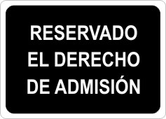Placa señal RESERVADO EL DERECHO DE ADMISION en aluminio. Hay 8 tamaños fijos para elegir. Se puede PERSONALIZAR con el texto que desee. Se envía adhesiva para su aplicación inmediata.